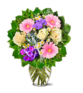 Propozycja wspaniałego prezentu dla kobiety. Efektowny bukiet mieszanych kwiatów. Proponujemy Piękny bukiet kwiatów w tonacji różowej i kremowej. Kliknij, by zobaczyć bukiet.