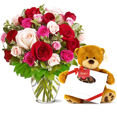 Bukiet dla Zakochanych, ale nie tylko! Jeżeli chcesz przekazać Bliskiej Ci osobie, ile dla Ciebie znaczy, to ta propozycja będzie idealna. Piękne i świeże róże wraz z czekoladkami i maskotką tworzą w tym bukiecie fantastyczne połączenie. Kliknij i zamów teraz.
